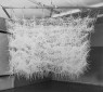 L’installazione consiste di palloncini di varie dimensioni, avvolti in un “tessuto” realizzato con fascette. Abbiamo eseguito vari prototipi della tessitura realizzata con le fascette e abbiamo ottenuto alcuni risultati per quanto riguarda l’aspetto della superficie. Tutto il processo è seguito da una ricerca attraverso strumenti di modellazione digitale parametrica su diverse aree del “tessuto realizzato con fascette”. I palloncini solleveranno l’intera struttura fino a un’altezza di 1.80 metri da terra in modo da consentire ai visitatori di passarci sotto.